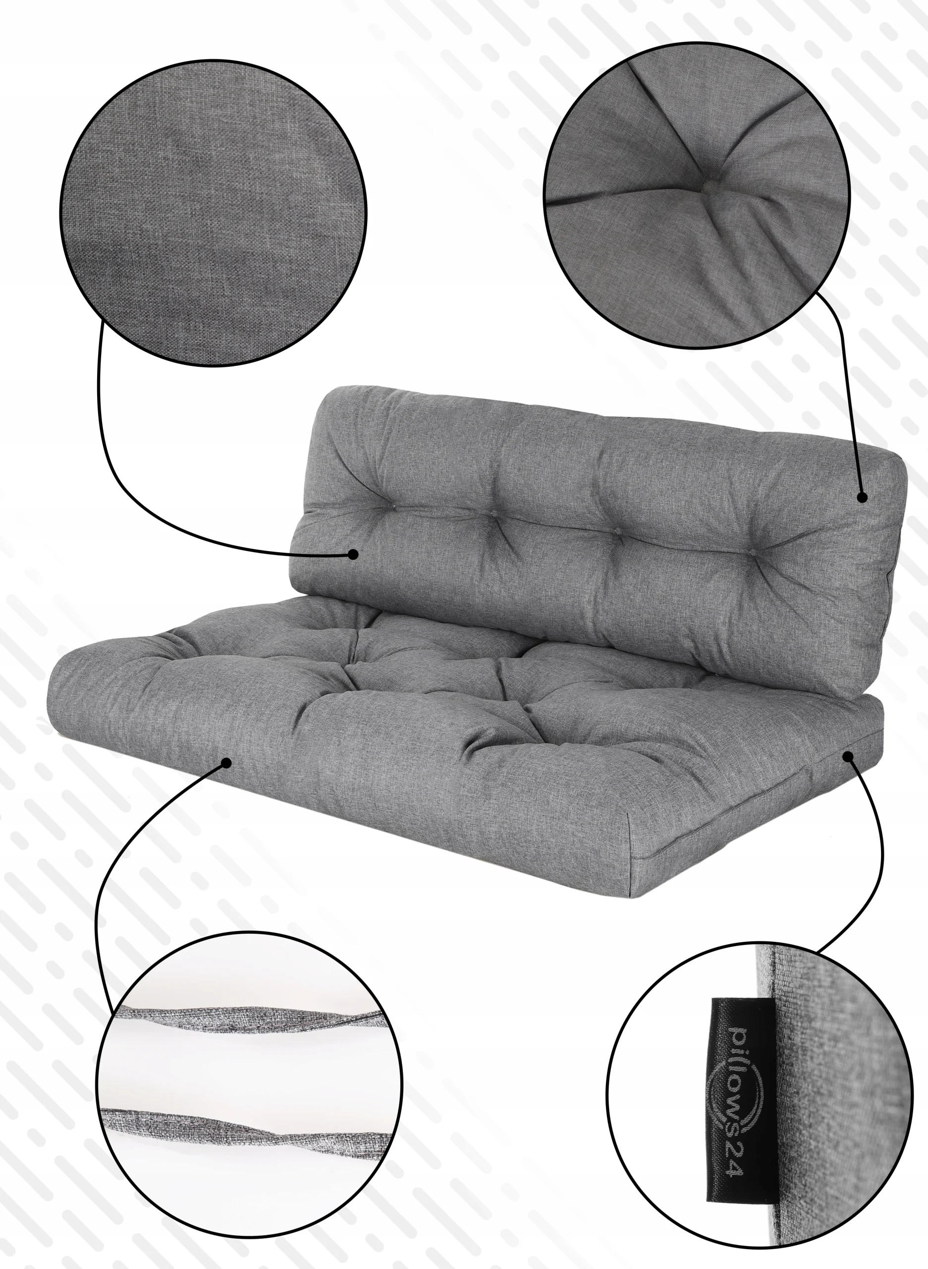 PODUSZKI NA PALETY PIKOWANE wykonane są z wysokogatunkowego materiału, który doskonale imituje len. Ten elegancki i naturalny wygląd dodaje stylu każdemu zestawowi mebli ogrodowych. Materiał ten charakteryzuje się dużą odpornością na otarcia oraz działanie mechaniczne, co gwarantuje długą żywotność poduszek nawet przy intensywnym użytkowaniu.