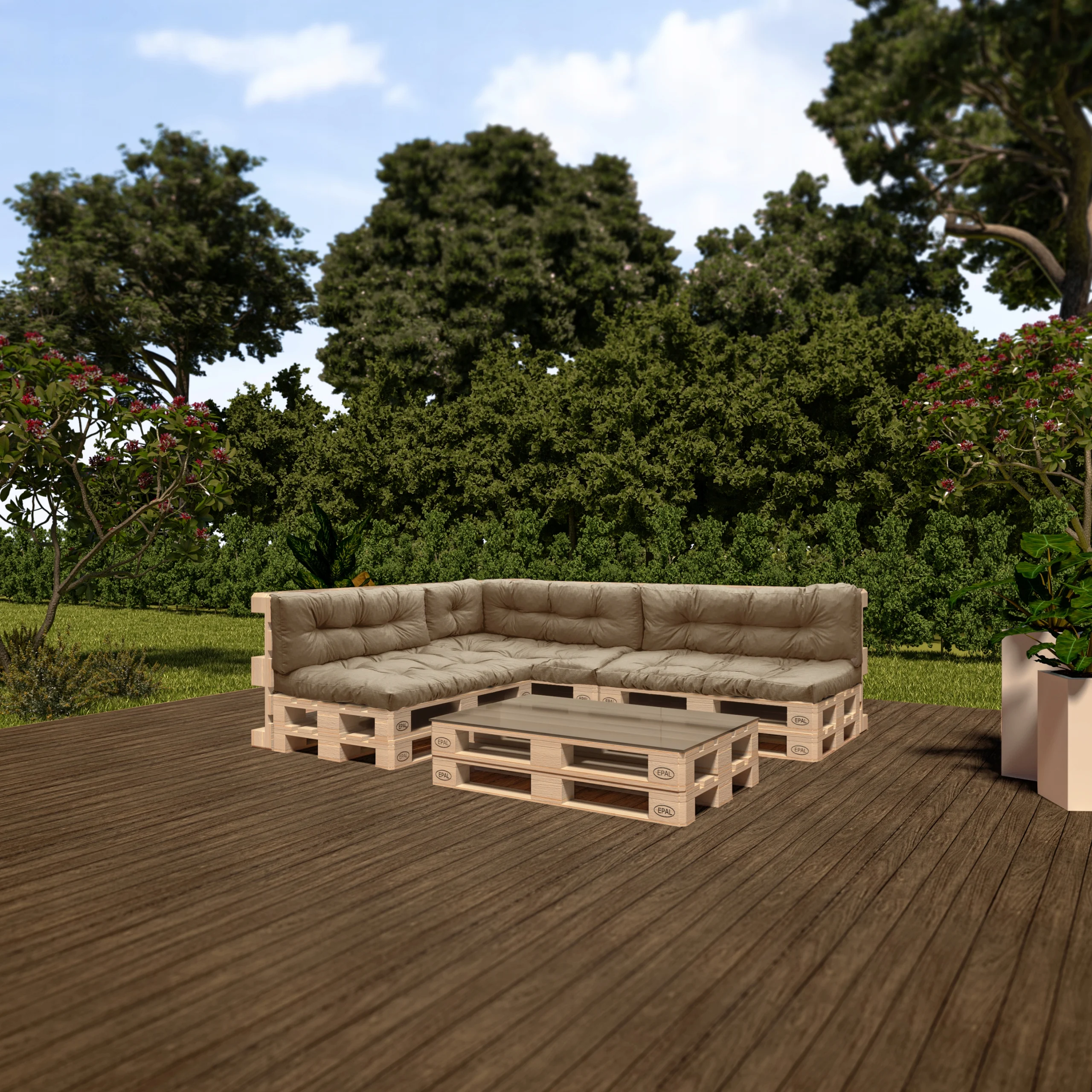 Stwórz wyjątkową przestrzeń wypoczynkową w swoim ogrodzie, na tarasie czy balkonie dzięki PODUSZKOM NA PALETY PIKOWANYM 120x80x40 KOMPLET 7 CZĘŚCI. Ten komplet poduszek składający się z 3 siedzeń, 3 oparć i poduszki bocznej, to idealne połączenie estetyki, wygody oraz funkcjonalności, które sprawią, że każde miejsce stanie się bardziej przytulne i komfortowe.