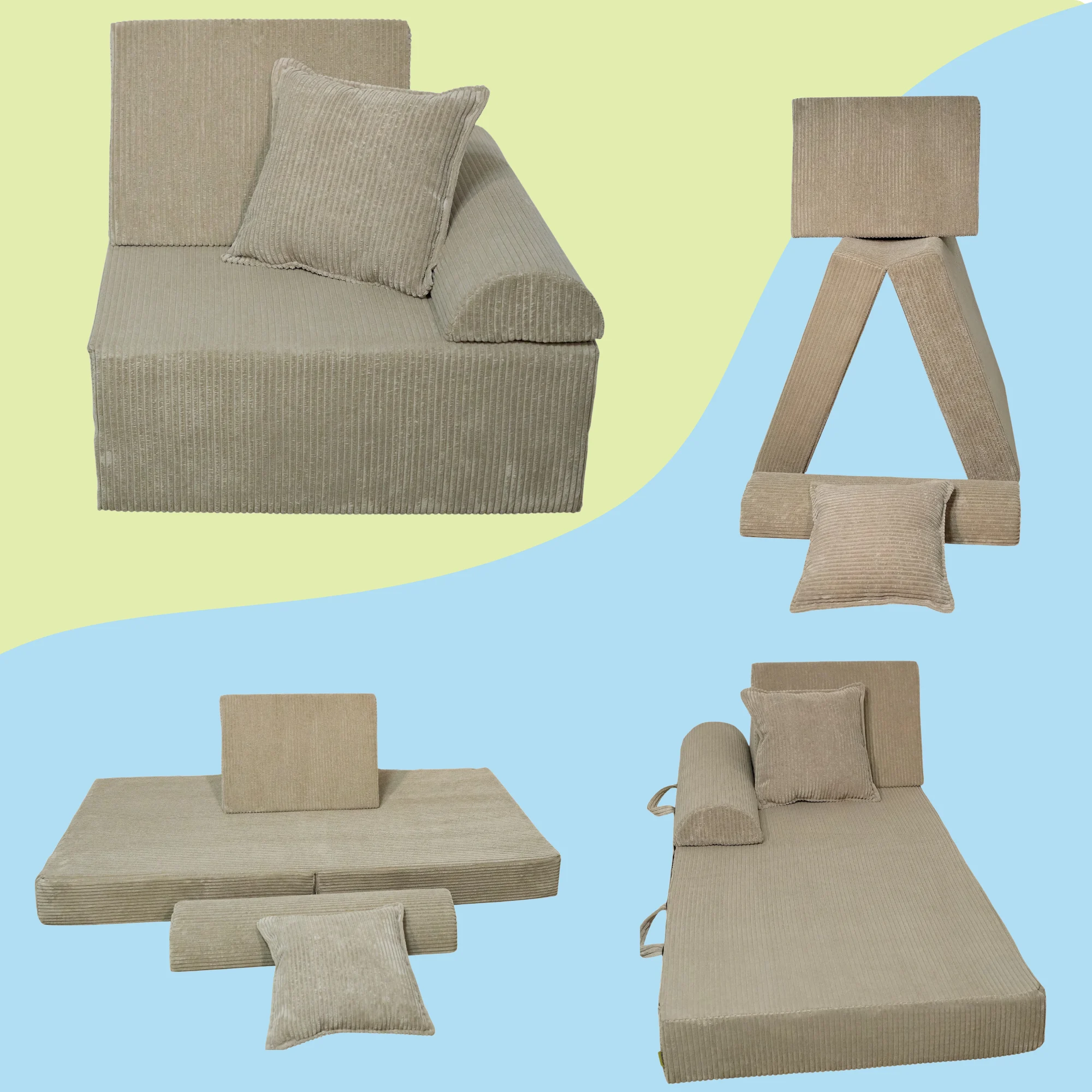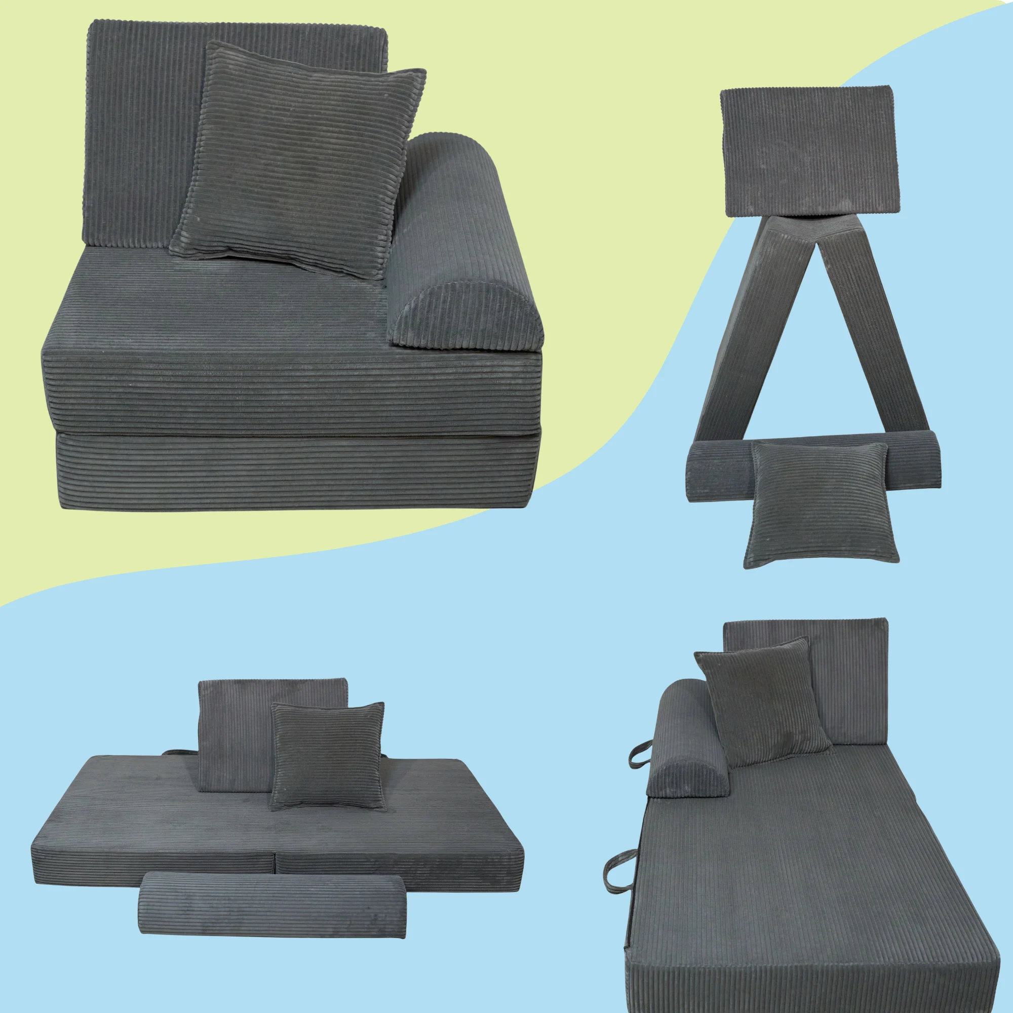 • Wielofunkcyjność: Sofa może być używana jako miejsce do siedzenia, leżenia, zabawy oraz drzemki.
