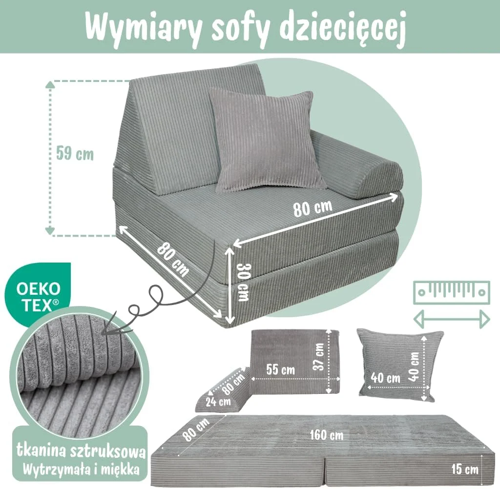 Sofa Dziecieca Modulowa Wielofunkcyjna Rozkladana Sztruks 160x80 Dlugosc Cm 80 Cm